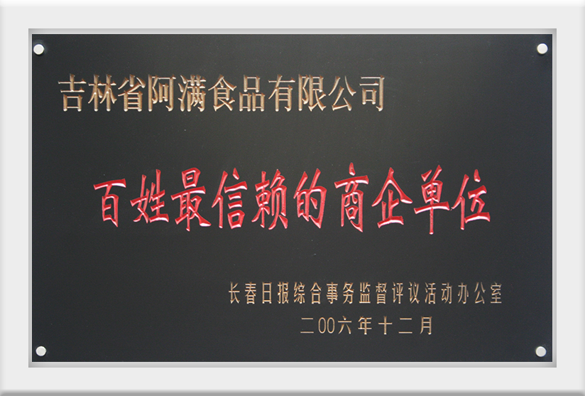 2007年12月獲得吉林省質(zhì)量誠(chéng)信企業(yè)